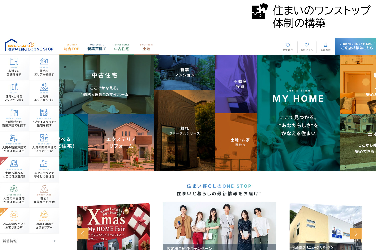 当社WEBサイトを新築戸建、中古住宅、土地まで幅広く比較検討ができる「住まいと暮らしのワンストップ」サイトにリニューアルし、プロモーション施策を改善しました。その結果、月間の平均閲覧数は、リニューアル前に比べ127%に増加しました。マーケット全体が縮小する中でも、リアルとWEBの両面でワンストップ体制を構築いたしました。