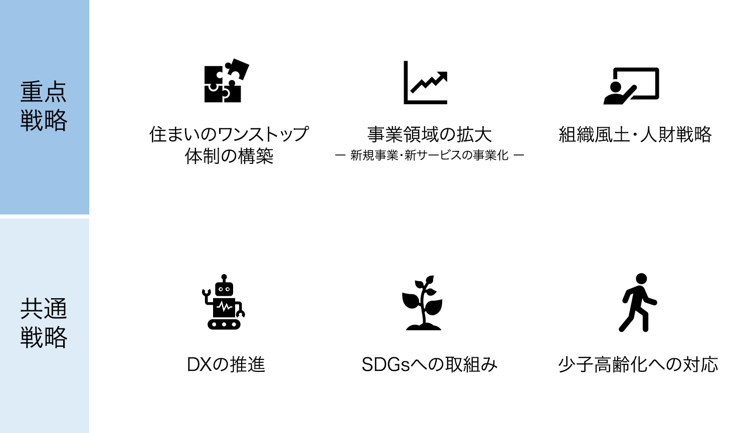目標達成に向けては、分譲マンション事業や分譲住宅事業の事業モデルを見直すとともに、法人・富裕層向けの成長事業の拡大による事業ポートフォリオの変革、DX推進による生産性の向上などの施策を進めていきます。