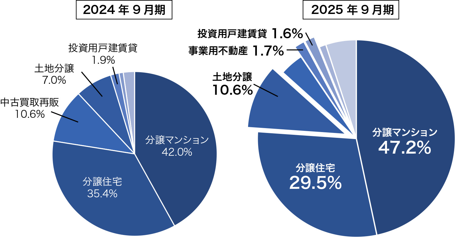 これらの成長分野の売上高合計の構成比率は、2024年9月期の8.9%から14.3%へと、5.4ポイント増加しました。この伸びは、不動産領域における事業の多角化が着実に進んでいることを示しています。今後も、従来の主力商品にメリハリを付けつつ、成長分野の拡大によって、よりバランスの取れた事業ポートフォリオの構築を進めてまいります。