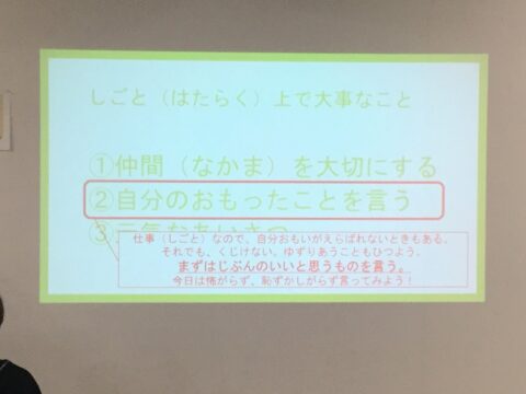 社員・パートのお子さんを社内に招き、挨拶・名刺交換などのビジネスマナーを学んだあと、