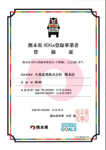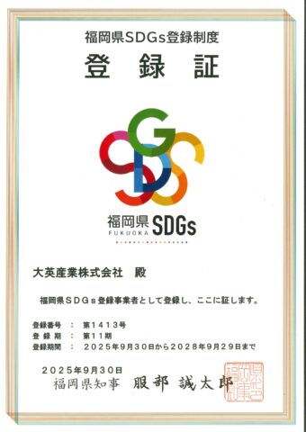 サステナビリティに資する企業として「SDGs登録制度」の認定を受けました。