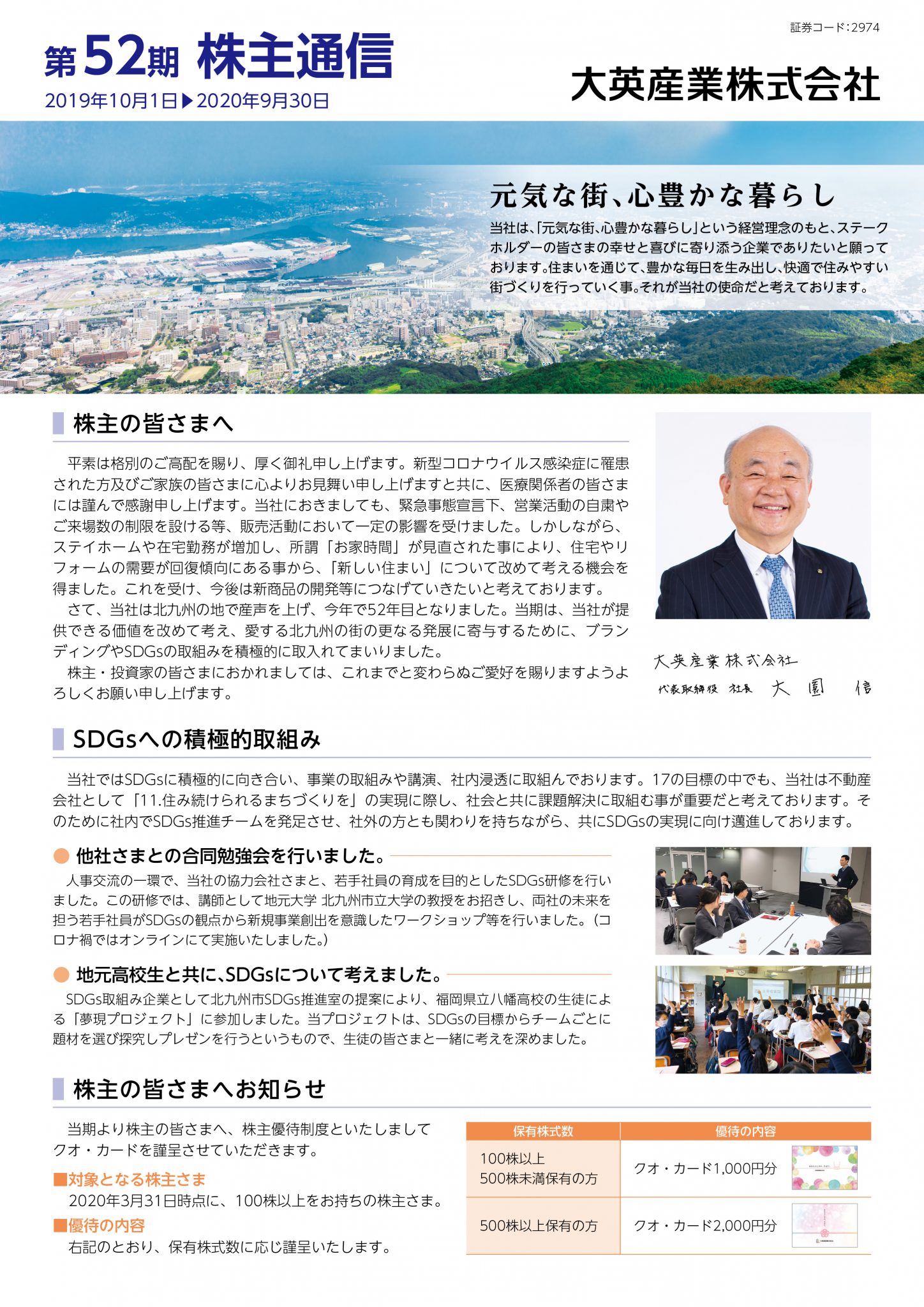 当社の当期1年間の取組みを、下記添付「第52期 大英産業株式会社_株主通信」にてまとめております。是非ご覧くださいませ。